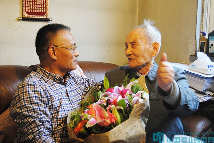 1月6日下午,在中國酒界泰斗秦含章先生109歲生日前夕,華夏酒報、中國酒業新聞人帶著對秦老的崇敬和祝福,總編輯韓文友、副總經理尚青一行,專程趕赴秦含章老人的家中送上生日祝福。