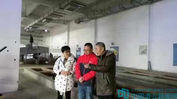 福成酒業釀酒車間總工與閆廠長向席玉介紹工藝流程