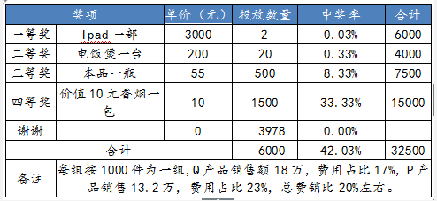下面是山東某酒廠新品上市消費促銷活動的獎項設置: