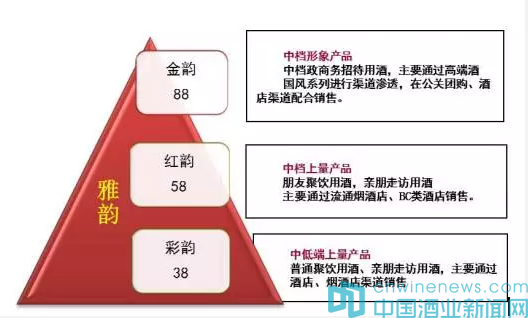 產品定位是產品研發的靈魂,決定著產品研發的目的和用途,產品定位得當市場推廣得心應手,市場定位偏差產品推廣就可能存在很大阻礙或不足。白酒企業進行產品定位從產品自身角色可以分為如下幾種:企業形象產品、放量產品、戰術性產品、跟隨性產品。從消費者層面產品定位可以分為如下幾個方面:滿足高端消費者或特殊群體需求、滿足政商務消費需求、滿足大眾消費群體需求。不同產品的角色定位決定著產品上市的手段及推廣方式不同,如筆者服務的河北xx酒業推出雅韻系列白酒定位做個例子如下: