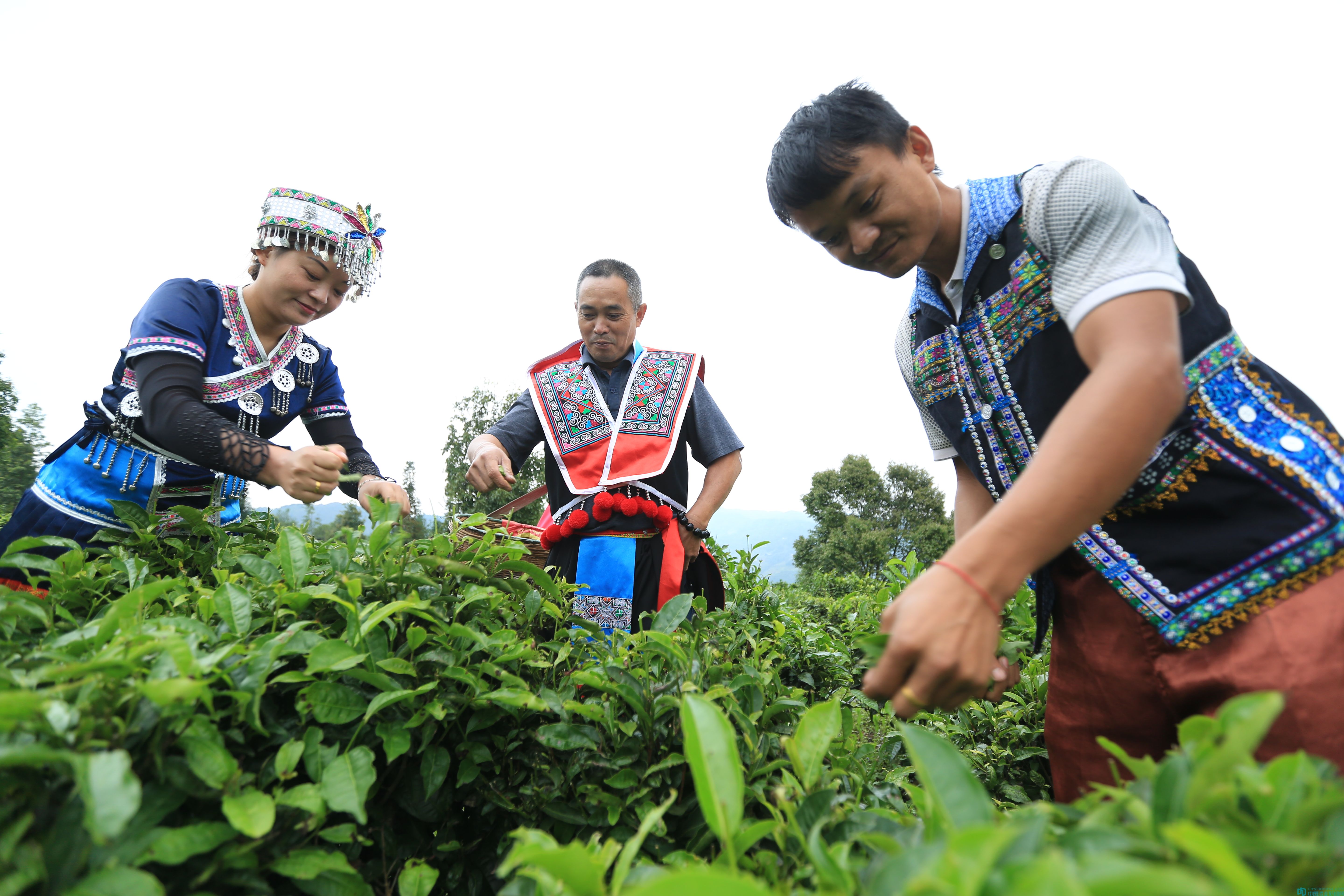 這組圖片拍攝于云南省臨滄市鳳慶縣勐佑鎮。圖片里的男男女女正在采摘大葉種普洱春茶。這樣的情景,在云南茶區的茶季里,四處可見。