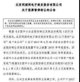 4月24日,網酒網主動申請終止掛牌,成為第一家退出新三板的酒類電商。