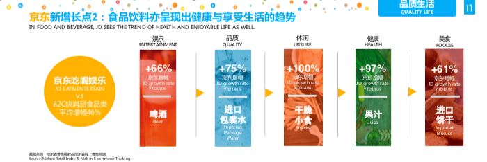 據(jù)全球領(lǐng)先的監(jiān)測(cè)和數(shù)據(jù)分析公司尼爾森發(fā)布的《品質(zhì)生活新趨勢(shì)》顯示,娛樂(lè)化已成為網(wǎng)購(gòu)下個(gè)風(fēng)口,京東超市啤酒增勢(shì)高達(dá)66%。而此次京東超市周年慶,京東集團(tuán)高級(jí)副總裁、京東商城大快消事業(yè)群總裁王笑松提出全效賦能、全鏈無(wú)界、全量共建、全面服務(wù)的 “全生態(tài)鏈戰(zhàn)略“,全面提升消費(fèi)體驗(yàn)。相信消費(fèi)娛樂(lè)化的大背景和京東超市各項(xiàng)加持助力下,京東酒業(yè)都將隨著京東大快消整體市場(chǎng)份額不斷壯大擴(kuò)張,其酒類業(yè)務(wù)的線上第一的地位將使其他平臺(tái)難以超越。