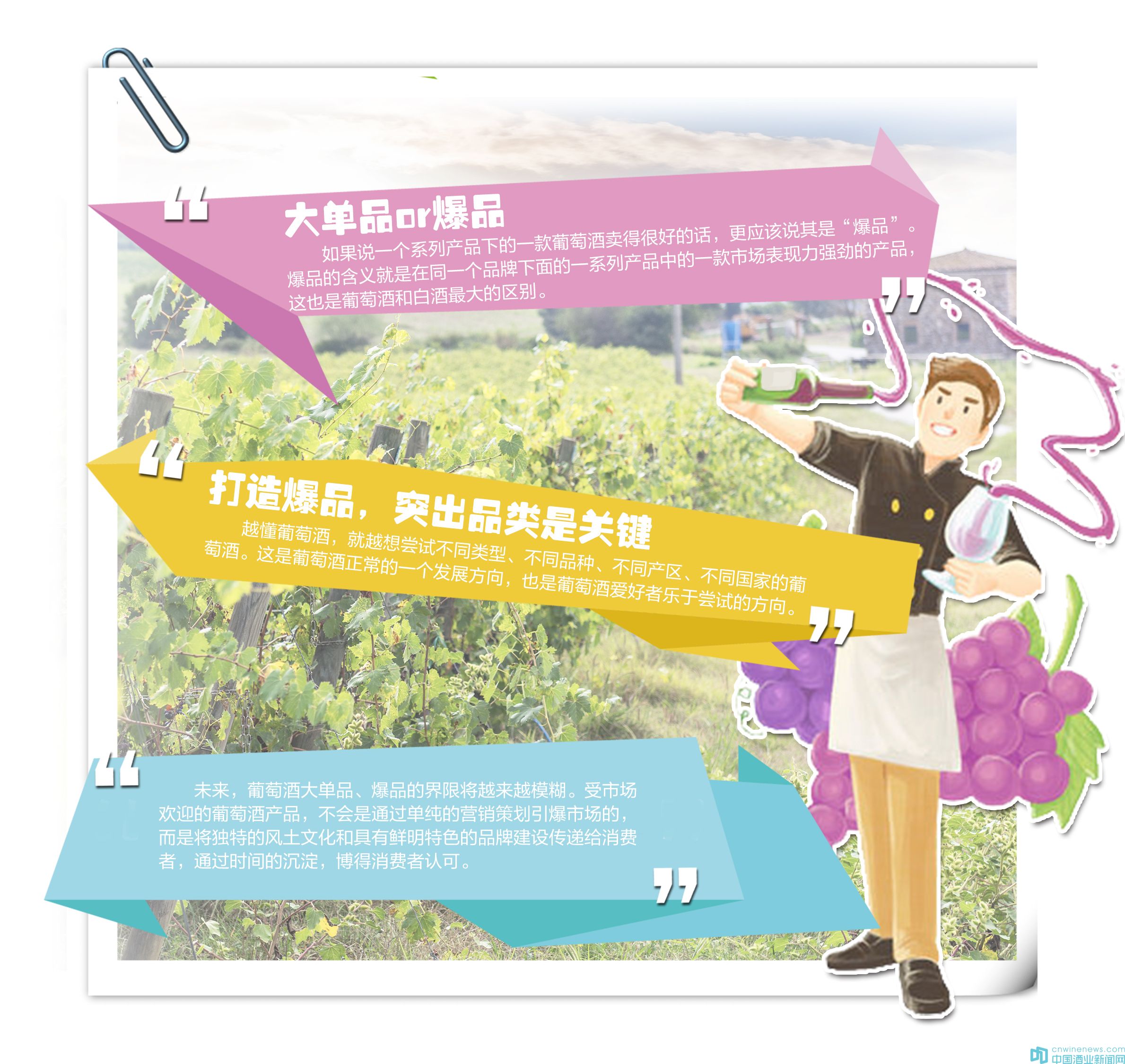 種種跡象表明,未來,無論是國產酒還是進口酒,將迎來品質致勝、多元化消費的時代,在電商發展迅猛的當下,所謂的葡萄酒大單品、爆品的界限將越來越模糊。未來,受市場歡迎的葡萄酒產品,不會是通過單純的營銷策劃引爆市場的,而是將獨特的風土文化和具有鮮明特色的品牌建設傳遞給消費者,通過時間的沉淀,博得消費者認可。