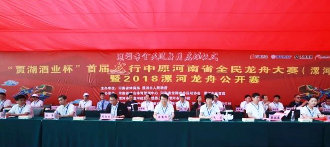 4月29日,以“弘揚龍舟文化,展示沙澧風貌”為主題的“賈湖酒業杯”2018漯河龍舟公開賽開幕式在漯河市沙澧河交匯處隆重舉行。中共漯河市委書記蒿慧杰,市委副書記、市長劉尚進,河南省體育局正廳級巡視員毛宏,市人大常委會副主任陳平,副市長栗社臣,市政協副主席田冠亭等省市領導及賈湖酒業集團董事長張彪、總經理孫耀州出席開幕式。