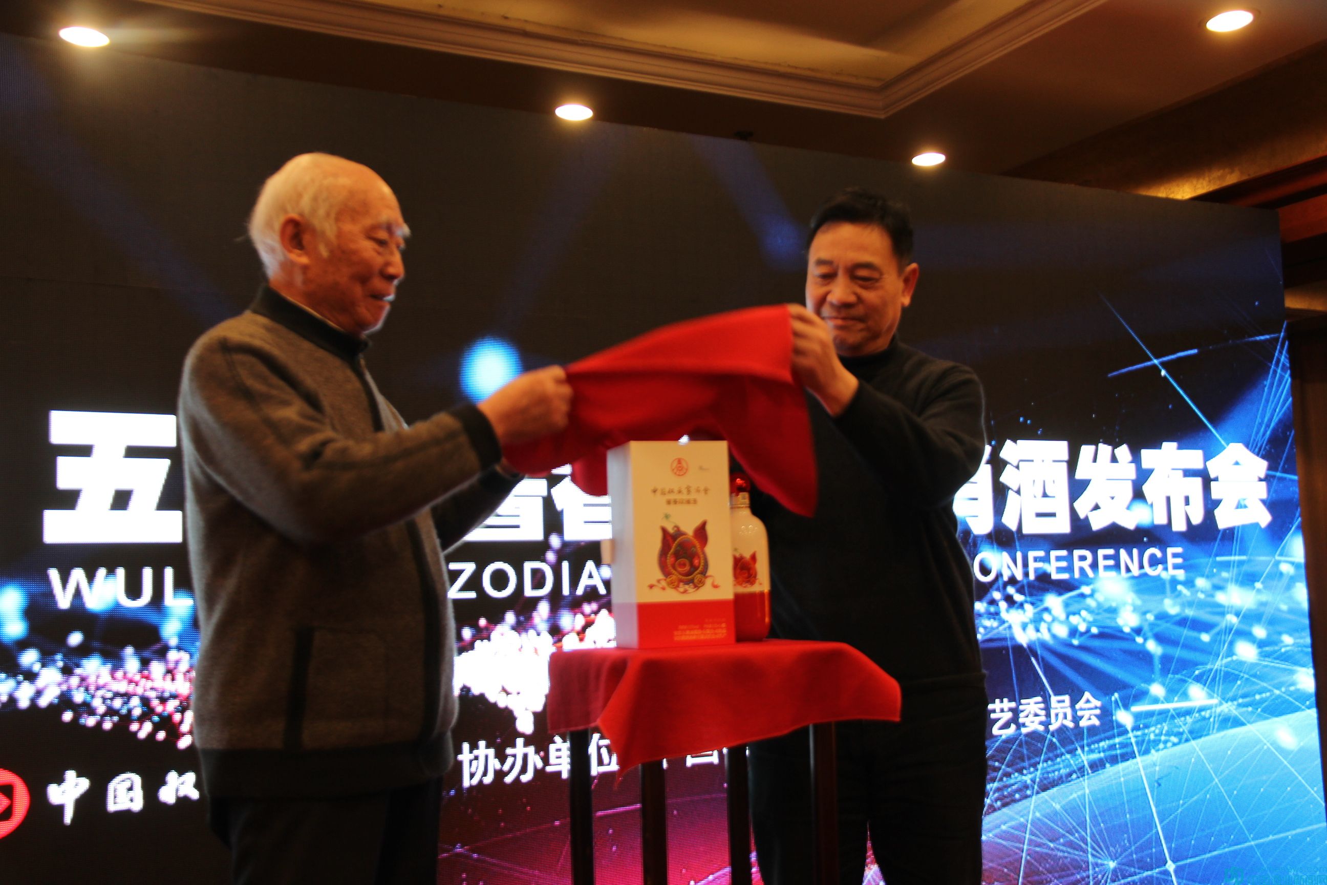 著名郵票設(shè)計大師吳建坤和中國收藏家協(xié)會會長羅伯健揭開了中國收藏家協(xié)會首款“收藏生肖酒”的神秘面紗