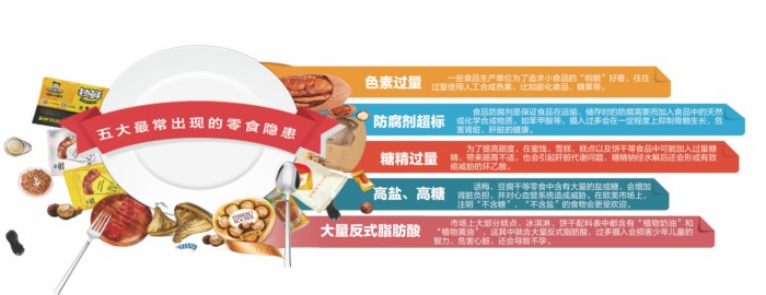通過對抽查數據的統計,行業專家總結出五大最常出現的零食隱患,專家并對其危害進行了詳細的分析。
