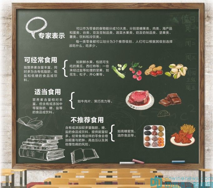 專家表示,可以作為零食的食物能分成10大類,分別是糖果類、肉類、海產品和蛋類、谷類、豆及豆制品類、蔬菜水果類、奶及奶制品類、堅果類、薯類、飲料和冷飲類。每一類零食都可以劃分為3個推薦級別,人們可以根據其級別選擇該吃什么,吃多少。