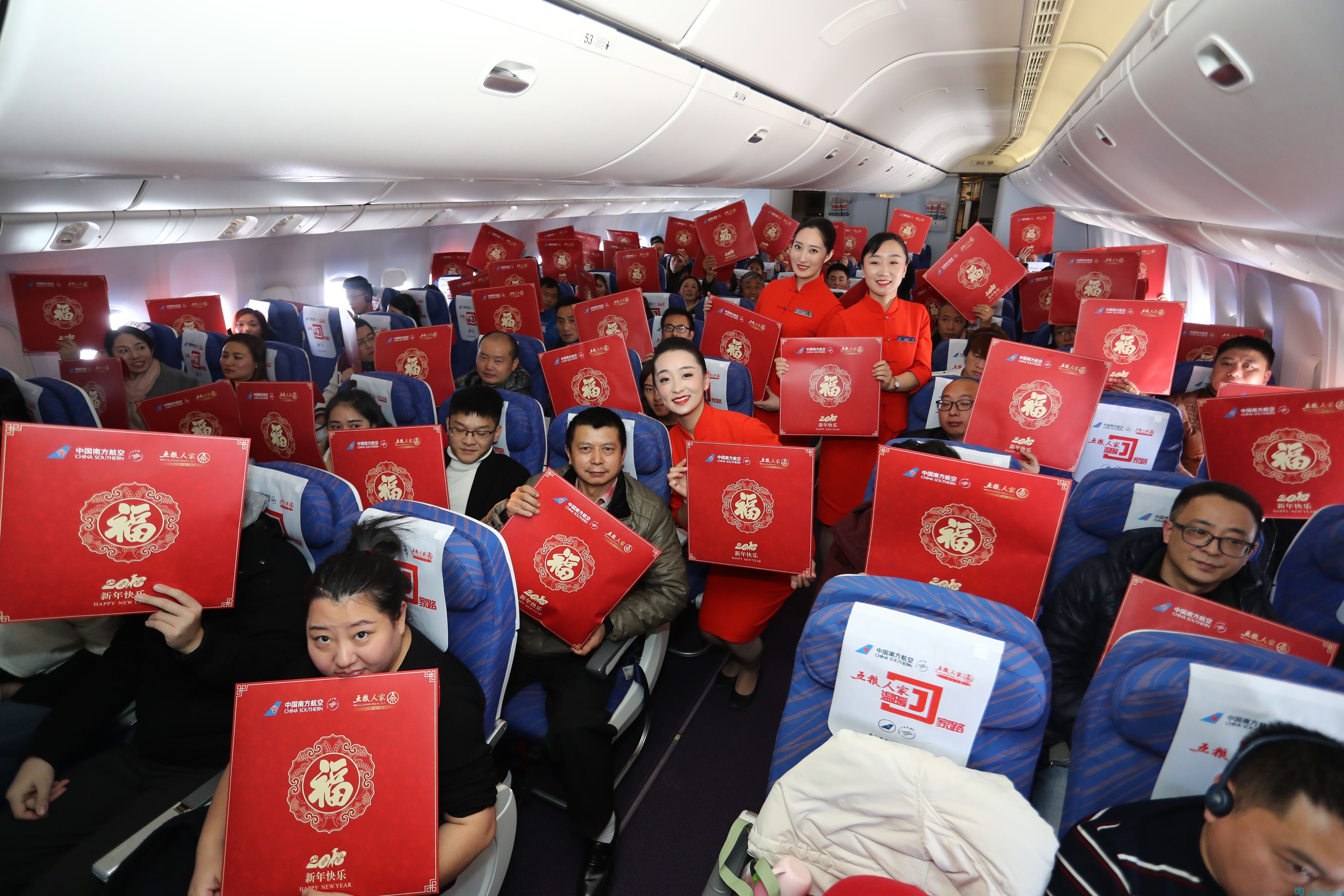 下午13:20,承載著150名四川籍游子們的客機從廣州白云機場起飛。五糧人家對客艙內進行了特別的布置,使整個空間充滿了喜慶的氛圍。旅途中,空姐們還與這些幸運的老鄉們展開了互動,老鄉們也都紛紛舉著由五糧人家準備的福袋表達了感激之情。