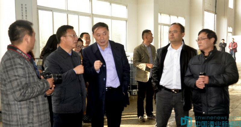 養(yǎng)生殿董事長劉保明、河南酒協(xié)蔣輝秘書長和媒體記者們參觀生產(chǎn)車間