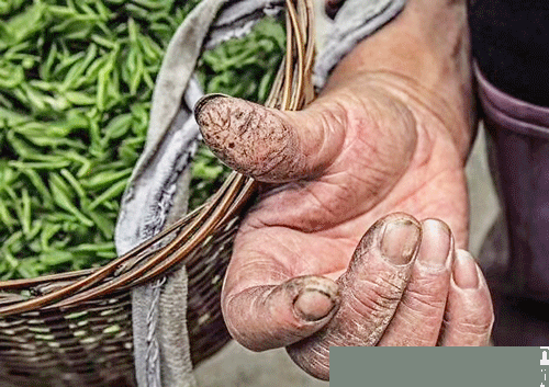 都知茶葉香,誰見茶人苦。正值春茶采摘時節,這幅在朋友圈流傳的圖片,叫人心疼。中國名貴茶葉由人工采摘,茶區有“早采三天是個寶,晚采三天便成草”的農諺。為搶鮮嫩,搶制好茶,采茶季里的茶農無時不與時間賽跑。一斤特級龍井含嫩芽三萬余;一芽一葉,形如雀舌的碧螺春,一斤中芽葉數量高達七萬之多。白毫萌生,嫩葉初展之際,是采茶人不眠不休的辛苦付出。我們尚未聯系到圖片作者,但本刊編輯部的心意與作者一樣,今日刊發本圖,實為表達對華夏所有茶人的深深敬意。