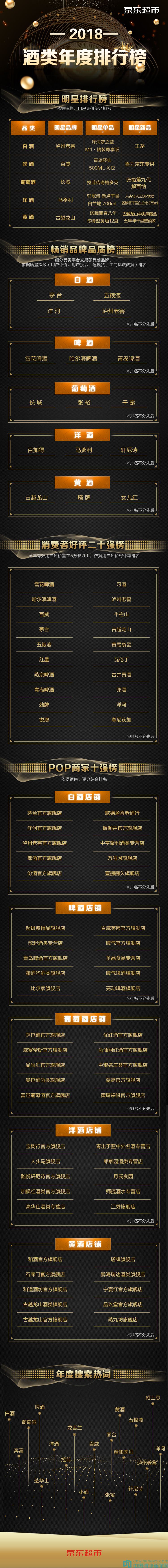 近日,京東超市酒類2018年度排行榜新鮮出爐。榜單主要從明星排行、暢銷品品質(zhì)排行以及消費(fèi)者好評(píng)排行等多個(gè)角度,圍繞白酒、啤酒、葡萄酒、洋酒以及黃酒等類別進(jìn)行了詳盡盤點(diǎn)。綜合上榜各大品牌來(lái)看,2018年在線上買酒這件事上,消費(fèi)者對(duì)高端品質(zhì)大牌的消費(fèi)意愿越發(fā)高漲;同時(shí),消費(fèi)者對(duì)保質(zhì)保真力度大的平臺(tái)具有更加高的忠誠(chéng)度。
