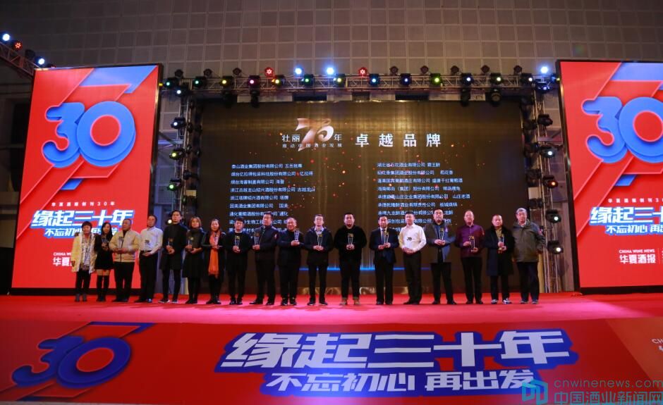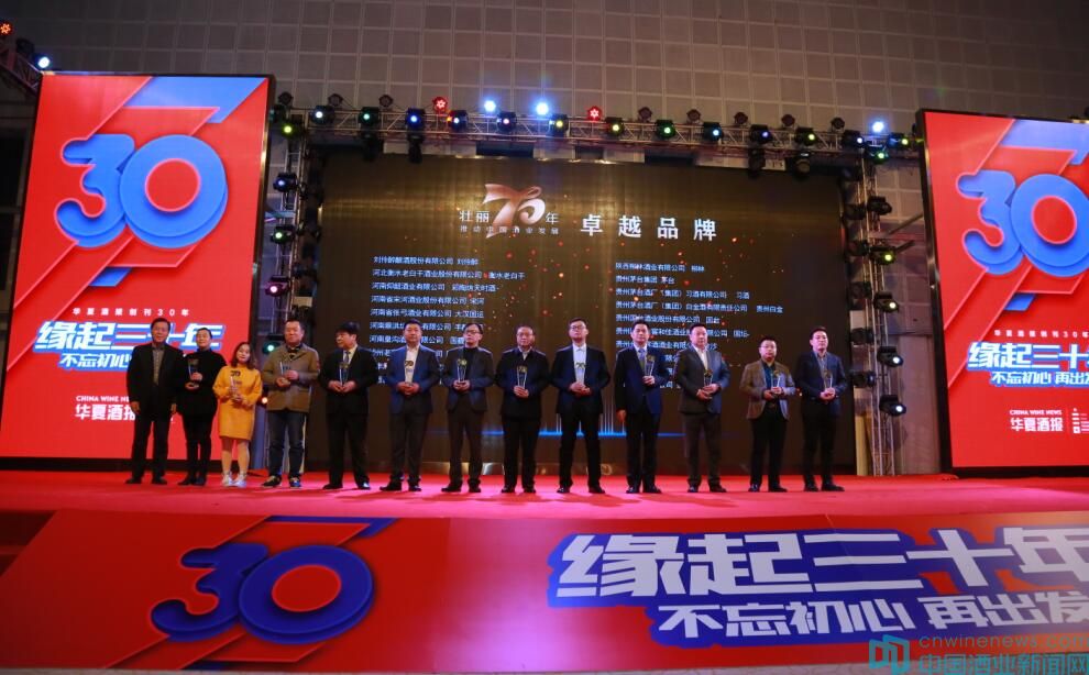 貴州茅臺集團、江蘇洋河酒廠股份有限公司、四川郎酒股份有限公司、山東景芝酒業股份有限公司、河南省宋河酒業股份有限公司、會稽山紹興酒股份有限公司、華潤雪花啤酒(中國)有限公司、北京燕京啤酒集團公司、北京酒仙網絡科技有限公司、中國沈酒集團有限公司、河南仰韶酒業有限公司等25家企業獲得了《華夏酒報》創刊30周年“攜手共進獎”。