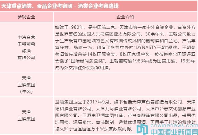 全國糖酒會是糖酒食品行業產銷對接、行業交流的重要平臺。為了提升各位遠道而來的客商的參會效果,讓更多的行業人士深入了解天津本地的名優企業及產品,全國糖酒會主辦方將于2019年10月22-23日舉辦“天津食品企業工業一日游"項目,具體日程安排請詳見下表: