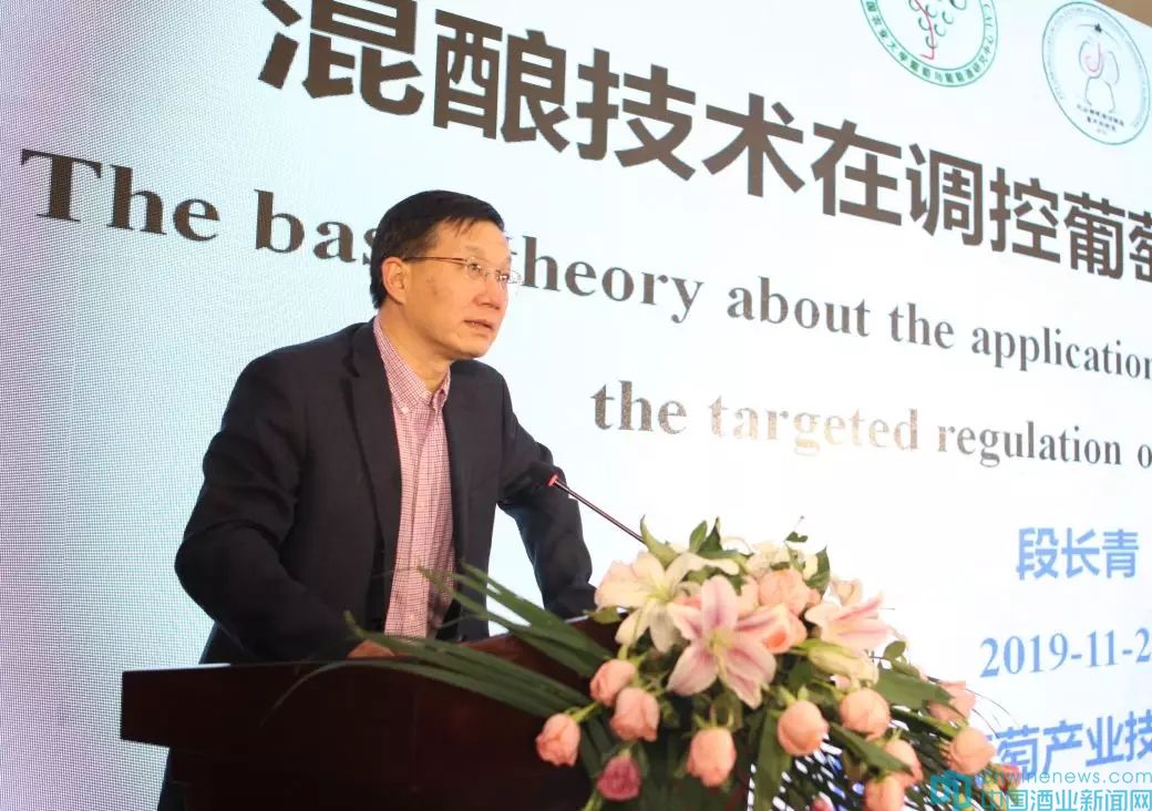 圍繞混釀技術與工藝,中國葡萄酒技術委員會主任、國家葡萄產業體系首席科學家段長青做了《混釀技術在調控葡萄酒品質應用》報告。他就國產葡萄酒在混釀中應該注意的技術問題及最新研究成果進行了深入分析。