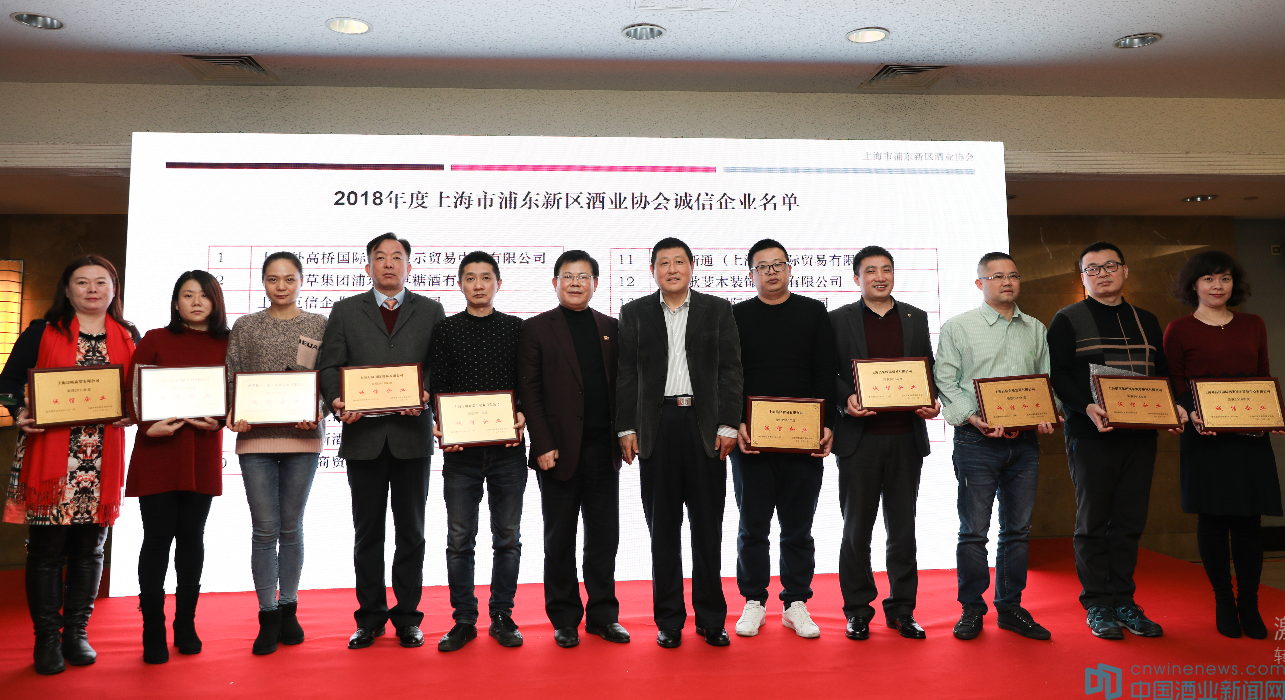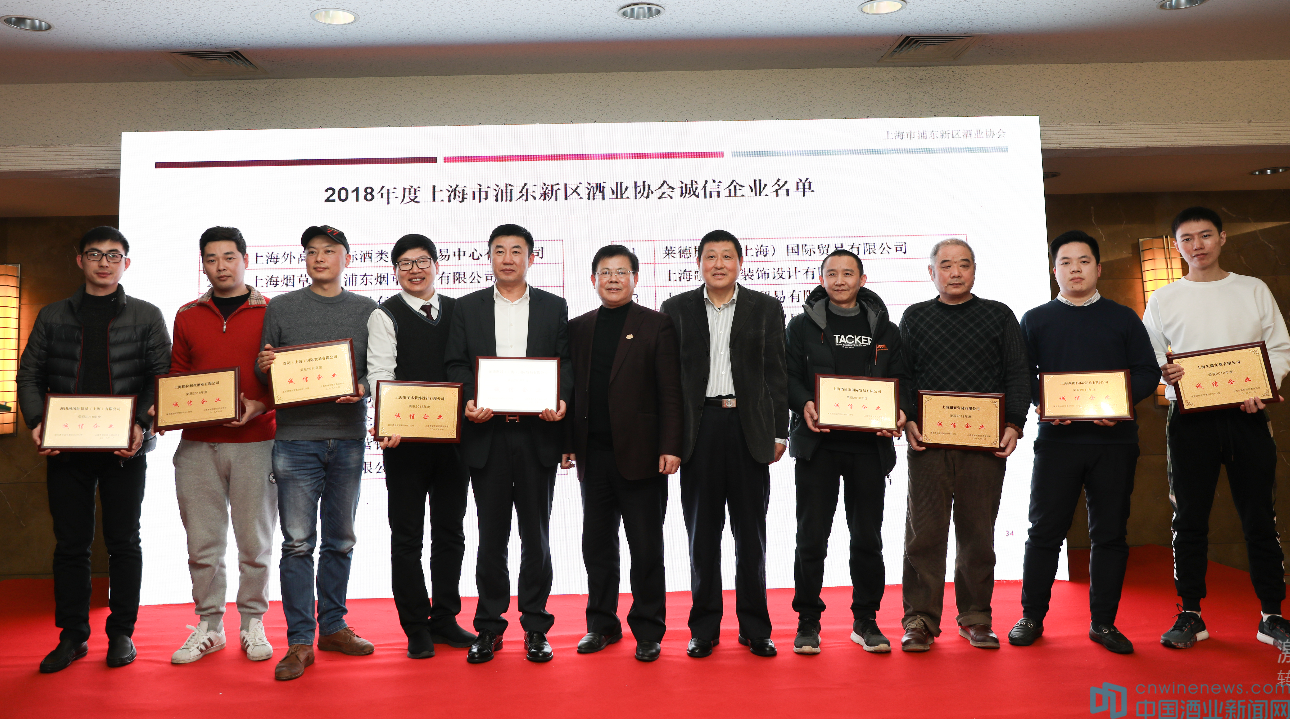 會上,還舉行了2018年度上海浦東新區(qū)酒業(yè)協(xié)會誠信企業(yè)頒獎儀式,上海外高橋國際酒類展示交易中心、上海煙草集團浦東煙草糖酒有限公司、上海巨信企業(yè)發(fā)展有限公司、上海昊樂國際貿(mào)易有限公司、上海浩澤貿(mào)易有限公司、上海百川新泰豐實業(yè)有限公司、上海力頤國際貿(mào)易有限公司、酒老板(上海)企業(yè)發(fā)展有限公司、上海巴克斯酒業(yè)營銷有限公司、上海詩昕商貿(mào)有限公司、萊德斯通(上海)國際貿(mào)易有限公司、上海歌斐木裝飾設計有限公司、上海西酊國際貿(mào)易有限公司、上海酒贏家國際貿(mào)易有限公司、上海瀾亞貿(mào)易有限公司、上海久貓實業(yè)有限公司、尊裕(上海)國際貿(mào)易有限公司、上海保拉利絲酒業(yè)有限公司、澳團網(wǎng)國際貿(mào)易(上海)有限公司19家企業(yè)榜上有名。浦東酒協(xié)黃寶華會長、自貿(mào)區(qū)市場監(jiān)督管理局保稅區(qū)分局局長張秉明為獲得誠信企業(yè)榮譽的企業(yè)頒發(fā)了獎牌。
