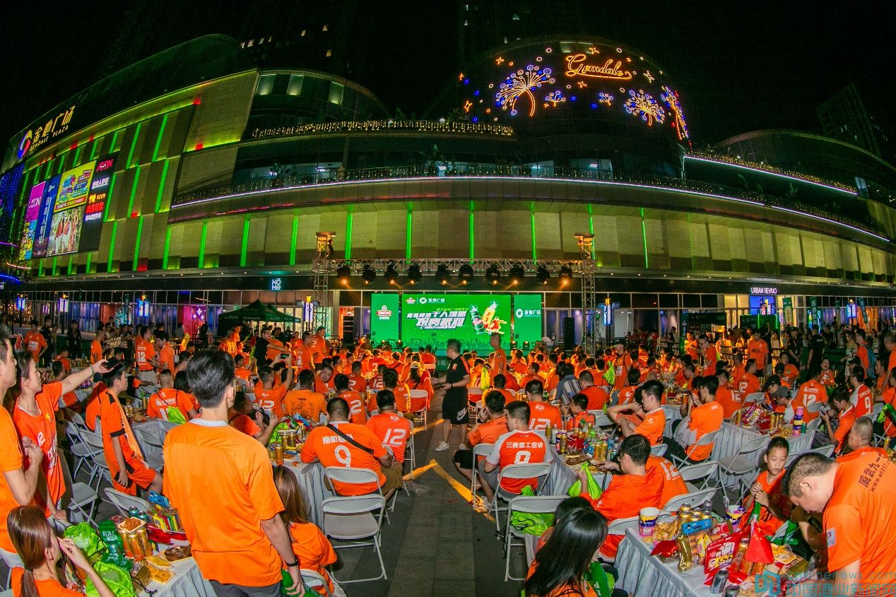 在江城的美麗夜景下,近千名球迷戶外喝啤酒享美食觀球賽,這對武漢球迷來說還屬第一次。900平的戶外廣場、上百桌露天球迷吧席、超清巨屏直播、完美呈現了一場絕無僅有的豪華觀賽派對,有球賽、有球友、有青島啤酒,這才叫看足球賽。