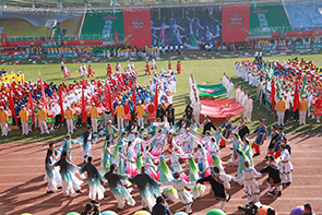 在開幕式上,青啤集團來自全國各地業務單位的職工代表組成了56個入場方陣,國旗方陣、司旗方陣、主題彩車等方陣前導通過;由青啤啦啦寶貝和新一屆管培生組成的活力方陣,以激情昂揚的舞蹈表演展現了青島啤酒年輕、時尚、活力的嶄新形象。