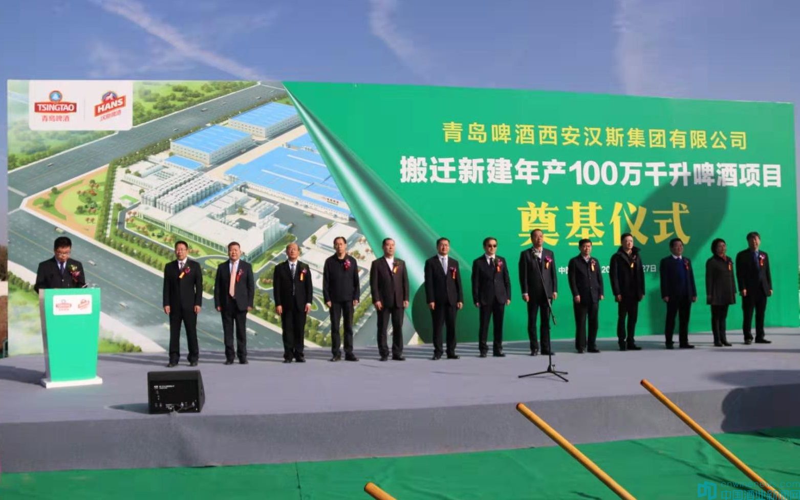 10月27日上午,青島啤酒西安漢斯集團有限公司年產100萬千升啤酒項目奠基儀式在西安臨潼現代工業新城舉行。西安市副市長楊廣亭,青島啤酒公司總裁樊偉,臨潼區委書記王浩,青島啤酒西安漢斯集團公司董事長張建吉,青島啤酒制造總裁助理、西安漢斯集團公司總經理楊振國出席了奠基儀式。