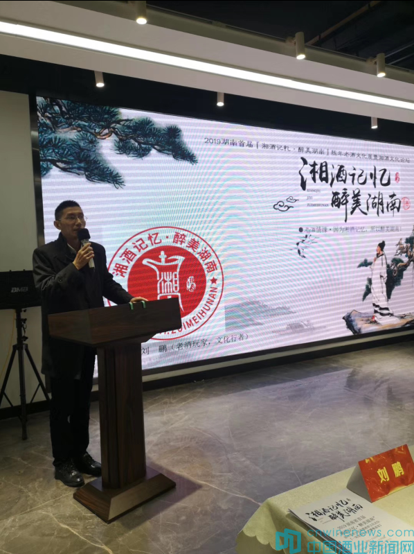 2019湖南首屆“湘酒記憶·醉美湖南”陳年老酒文化展暨湘酒文化論壇的主辦人劉鵬懷著對家鄉的熱愛和情懷,傾心研究湘酒文化十年多,重點涉獵以中國名酒“武陵酒”和湖南名酒“德山大曲”等湖南地方名酒、中國老八大名酒、中國十七大名酒五十三優國家優質酒為主的鑒藏與研究。近些年,他筆耕不斷,陸續在《華夏酒報》、頭條新聞等國內知名媒體發表了《我們是品酒師》、《湘酒記憶》、《白酒的年份迷思與“陳年老酒的正名”》、《父愛如酒、歲月陳年》、《億元藏品時代、老酒站上高端臺面》、《打造可持續發展的老酒收藏投資體系》、《陳年老酒收藏市場迎來黃金拐點》等數十篇鄉土情懷作品和行業分析文章。