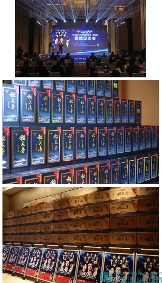 活動當天,巨幅明星陣容海報直撞眼球,稻花香四大核心產品堆碼排列成墻。現場不僅受到襄陽日報、襄陽晚報、漢江網、襄陽廣播電視臺等本土媒體的熱捧,還吸引了人民網、新華網、中新社、新浪等國家級媒體不遠千里前來助陣,整齊的會場、耀眼的射燈、精心的布置......媒體見面會只待一觸即發。