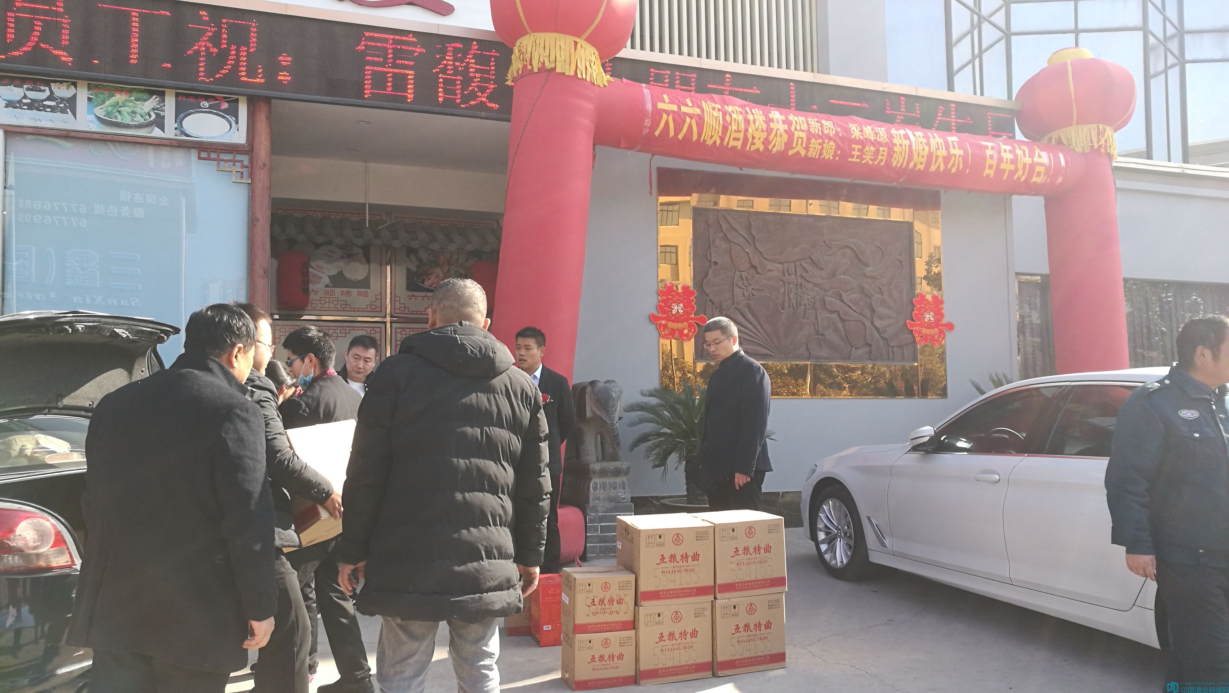 在南陽市區(qū)仲景路,剛到五糧特曲核心終端店寶森名煙名酒行門口,就碰上負(fù)責(zé)人潘蘭準(zhǔn)備外出為婚宴活動(dòng)送酒。潘蘭告訴記者,當(dāng)天有一對(duì)新人結(jié)婚,新郎指定五糧特曲為婚宴用酒,兩天需要五糧特曲15箱。記者跟隨潘蘭來到六六順酒店婚宴現(xiàn)場(chǎng),潘蘭向新郎贈(zèng)送2瓶五糧特曲,并送上新婚的祝福。新郎張先生告訴記者,五糧特曲品牌好、喜慶、宣傳很到位,他對(duì)這種服務(wù)很滿意。