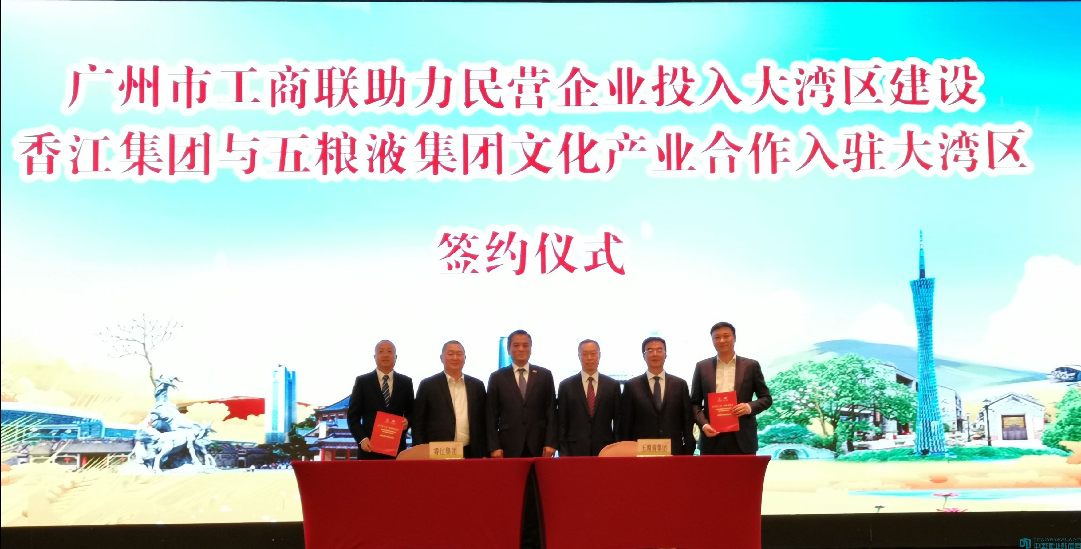 10月15日,“廣州市工商聯助力民營企業投入大灣區建設暨香江集團與五糧液集團文化產業合作入駐大灣區簽約儀式”舉行。