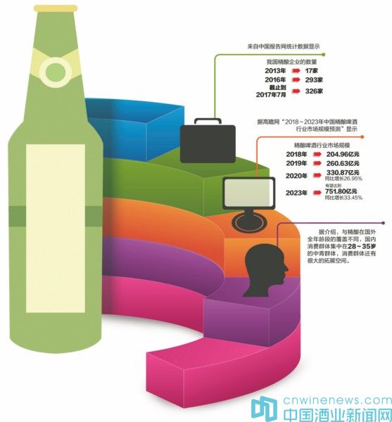 正是由于精釀啤酒具有市場(chǎng)空間大、利潤(rùn)率高等特征,契合了消費(fèi)者追求個(gè)性化、健康化、多樣化的品質(zhì)消費(fèi)要求,精釀啤酒的市場(chǎng)規(guī)模與企業(yè)數(shù)量均成穩(wěn)步增長(zhǎng)的態(tài)勢(shì)。