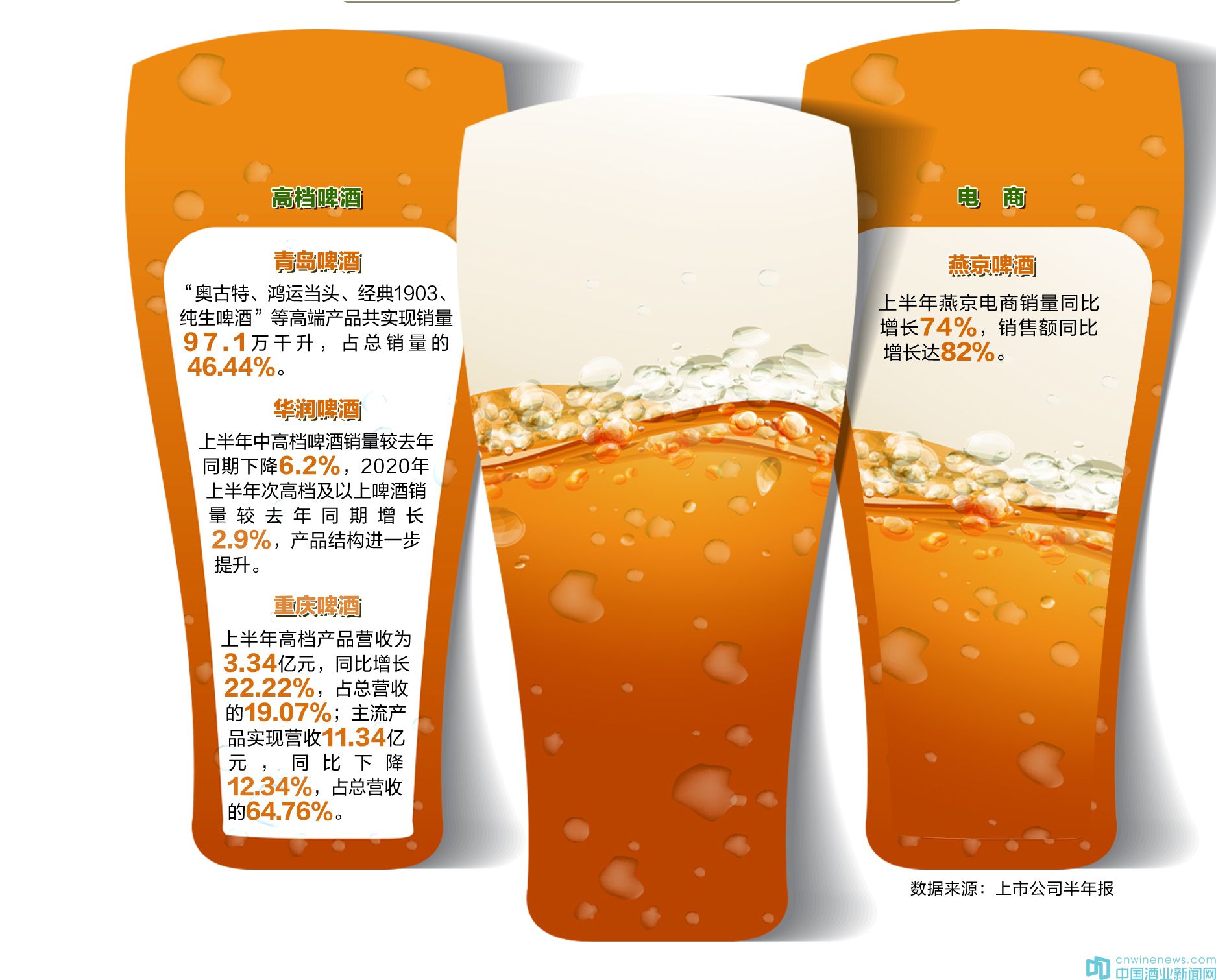 華潤啤酒在半年報中稱,報告期內,中高檔啤酒銷量較去年同期下降6.2%,但受益于去年引入喜力國際品牌及各檔次啤酒的銷量于2020年第二季度恢復增長,2020年上半年次高檔及以上啤酒銷量較去年同期增長2.9%,產品結構進一步提升。