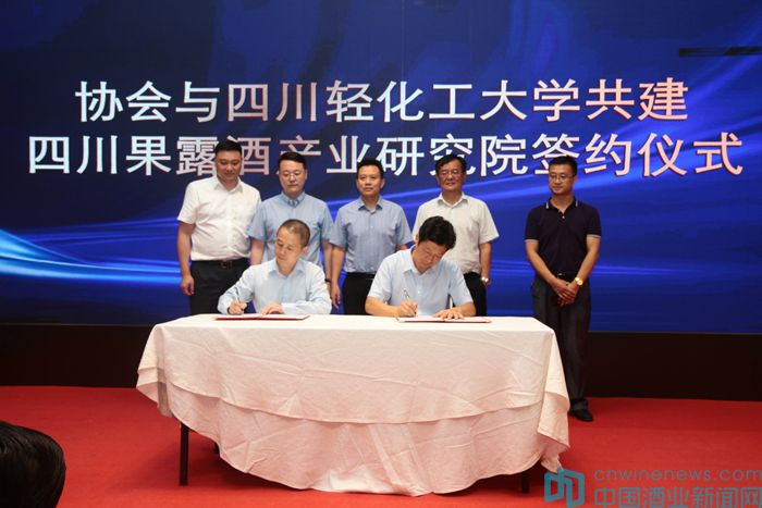 7月24日下午,在成都舉行的四川果酒新品發(fā)布會(huì)暨省葡萄酒與果酒行業(yè)協(xié)會(huì)成立周年慶典活動(dòng)上,四川省葡萄酒與果酒行業(yè)協(xié)會(huì)執(zhí)行會(huì)長(zhǎng)、秘書(shū)長(zhǎng)周勁松與四川輕化工大學(xué)生物工程學(xué)院(五糧液白酒學(xué)院)院長(zhǎng)羅惠波,分別代表各自單位在共建四川省果露酒產(chǎn)業(yè)發(fā)展研究院合作協(xié)議書(shū)上簽字。
