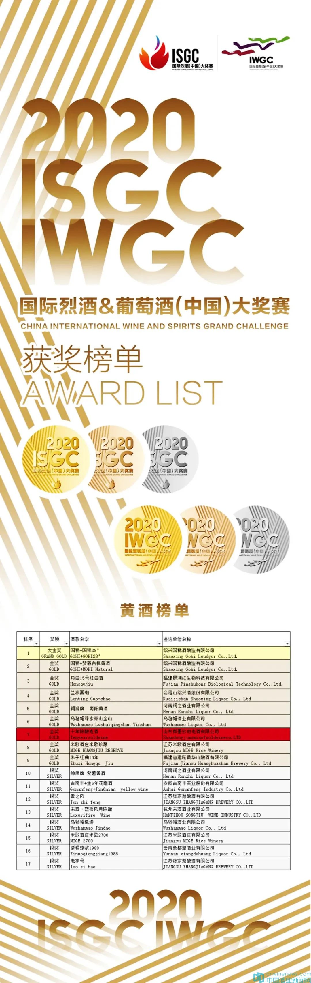 世界酒業人關注的2020國際葡萄酒(中國)大獎賽(IWGC)暨國際烈酒(中國)大獎賽(ISGC)大賽,2020年9月18-21日在山東沃族(蓬萊)葡萄酒莊完滿落幕。經過評委三天的品評,最終評選出黃酒獲獎產品17款,其中,大金獎產品1款、金獎產品8款、銀獎產品8款,其中妙府老酒十年陳釀斬獲金獎。