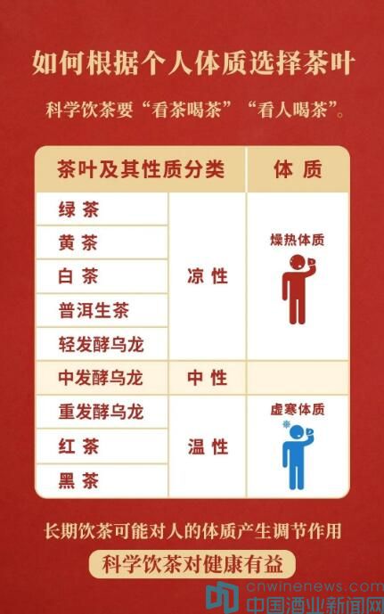 我們應結合不同體質特點和不同茶類屬性選擇適合自身的茶葉種類。一般來說,燥熱體質的人,應多喝涼性茶,虛寒體質者,應多喝溫性茶。每種茶類,無論你是什么體質,小嘗一下,偶爾喝喝不會影響健康。長期飲茶可能對人的體質產生調節作用。總之,科學飲茶對健康有益。