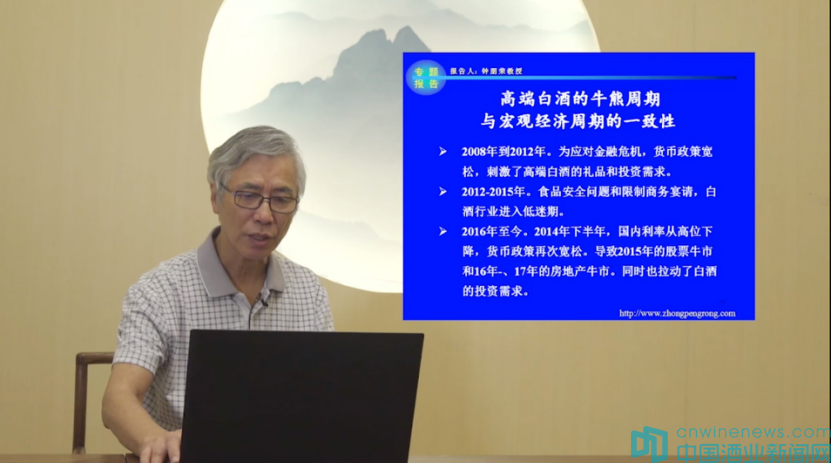鐘朋榮在主旨演講中重點闡述了后疫情時期中國經濟走向與白酒行業的發展趨勢。鐘朋榮表示,我國M2貨幣總量20多年增長了近100倍,但CPI增長幅度很小,高端白酒的牛熊周期與宏觀經濟周期具有一致性,貨幣增加會直接刺激高端白酒消費增加。在鐘朋榮看來,當前的經濟特點對高端白酒具有三大影響,一是有利于增加高端白酒消費,二是用于交際的需求增加;三是用于保值和投資的需求增加。
