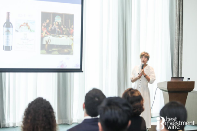 國家葡萄酒技術委員會專家委員、全球葡萄酒中國品鑒體系評委、廣東省酒類行業協會葡萄酒分會秘書長陳泳老師在大會上為來賓講解何為具有投資價值的葡萄酒及評定的幾個重大要素:系出名門、陳年能力強,且在陳年過程不斷升值、產品具備有稀缺性,產量有限、評分高、藝術價值高...等等。以木桐酒莊為例,從酒莊地理位置,土壤結構、種植、釀造到酒標設計到市場流通......陳老師以時間為軸線為來賓生動地做講解。