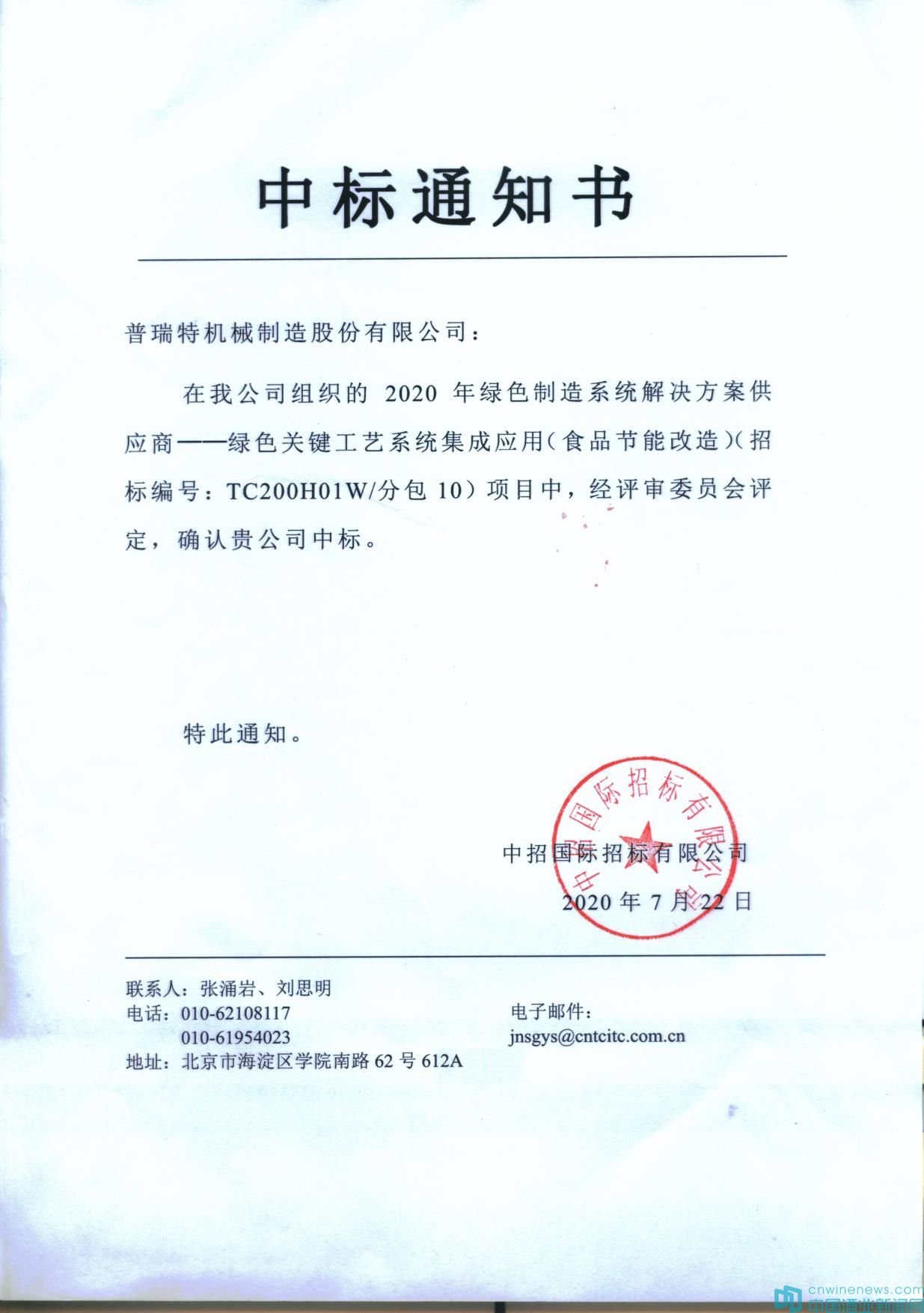 近期,在工信部組織的2020年綠色制造系統解決方案供應商招標評標中,普瑞特機械制造股份有限公司成功中標綠色關鍵工藝系統集成應用(食品節能改造)解決方案供應商,成為《中國制造2025》國家強國戰略的一員。