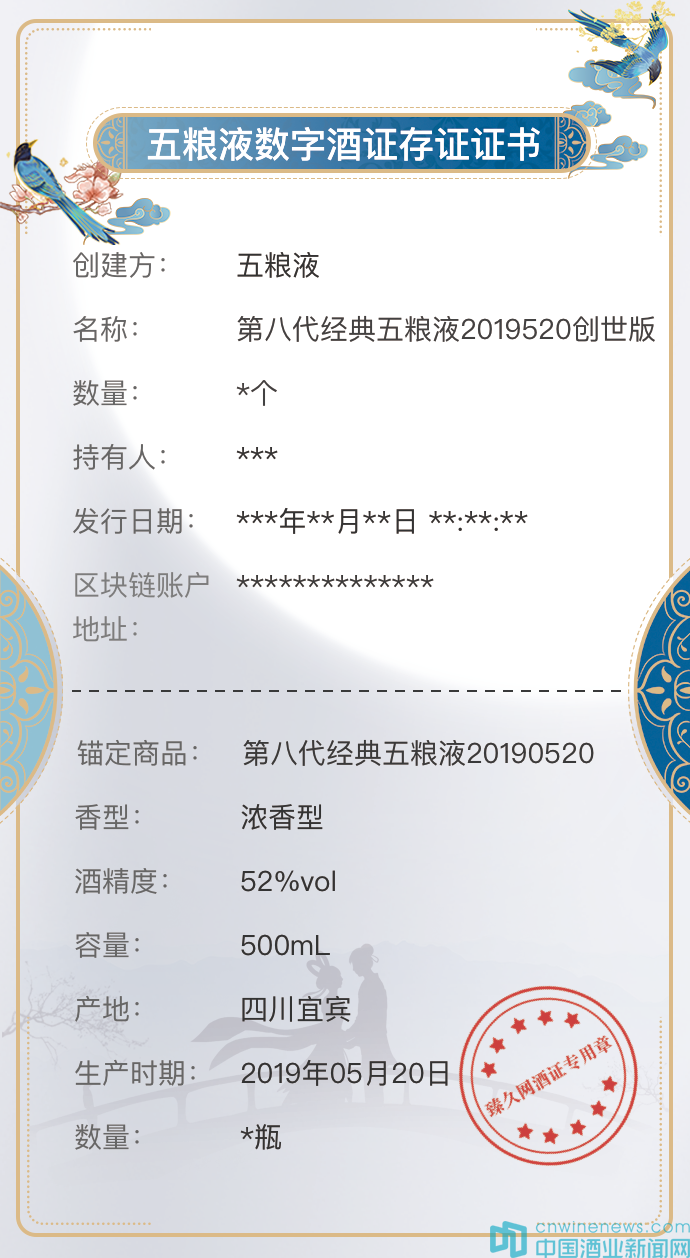 七夕佳節即將到來之際,五糧液再出“大招”,指定臻久網在全網首推五糧液數字酒證2019520創世版酒證。