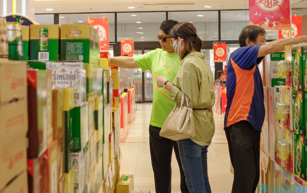 青島啤酒工作人員告訴記者,除了線下商超,在天貓、京東等各大電商渠道,青島啤酒中秋促銷也在進行中,方便大家“手指一點 啤酒到家”。