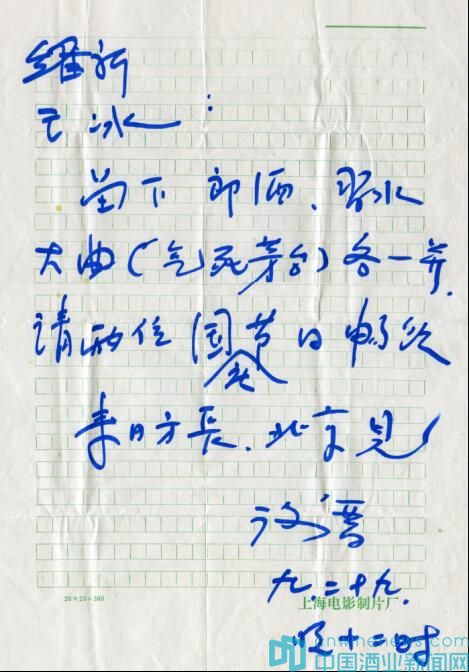 但是,電影《高山下的花環》的導演謝晉肯定很熟悉“氣死茅臺”的故事,后來謝晉在給友人的一封信中說起習水大曲時還提到這個典故,這封信的原稿現在筆者手里,抄錄一下: