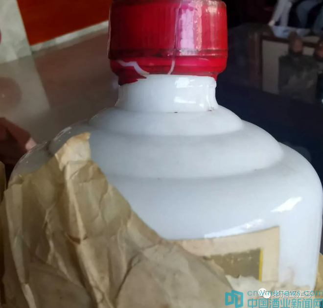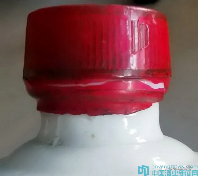 1、乳白玻璃瓶,紅塑蓋,紅封膜(偶有異色膜)。紅膜頂部無暗記(茅臺),應有“麻點”“麻坑”。
