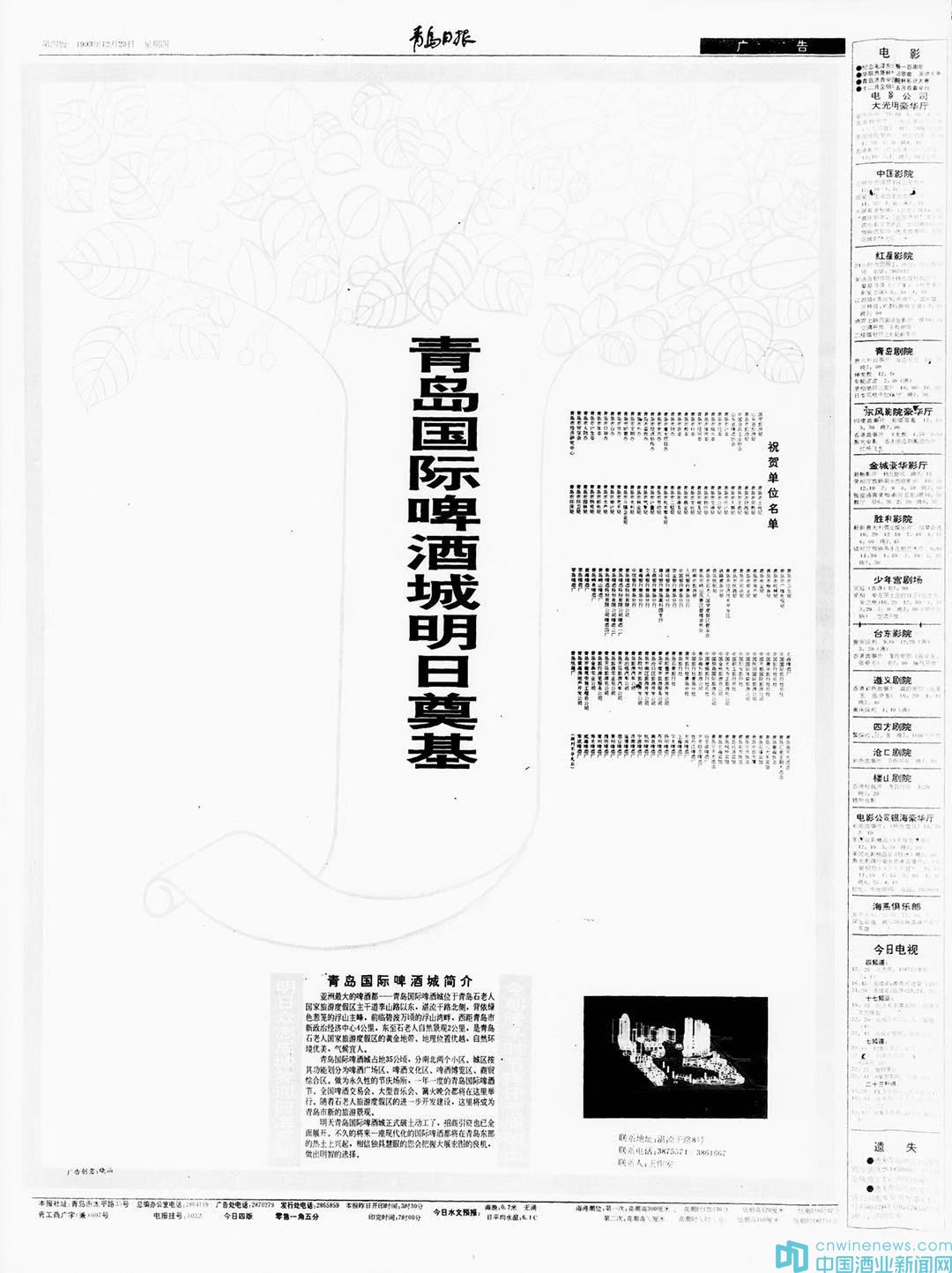 此文發(fā)表時林醒愚剛過36歲,正值青壯;再翻舊作時已六十有三。啤酒城開建以來,這里幾番換主、多輪改造、功能嬗變,唯一不變的是昔日開創(chuàng)者們對那座酒城已然固化的赤誠與懷念。從1993年奠基至2012年改造,只有一個人完整地陪著那座酒城固守了18年,并將30年的青春熱血、中年砥礪和老來智慧,全部維系在一個與啤酒城相關的盛大節(jié)日中,那個人就是林醒愚——執(zhí)著始終的愛節(jié)人和護城者。顯然,微觀層面的“護城”系指對27年前奠基的那座城池的精心護衛(wèi),宏觀意義的“護城”則是持恒守護和奮力播揚青島這座聞名中外的啤酒之城。轉眼節(jié)日遷出啤酒城已近十年,主會場也從東海岸轉戰(zhàn)西海岸,但他對這座城的流連和摯愛卻老而彌堅。至今,他還珍存著1993年12月23日預告啤酒城奠基的《青島日報》,也收藏著啤酒城最早的招商畫冊和各類紀念品。并分別在2012年、2014年,都力主舉辦過較大規(guī)模的“啤酒節(jié)博物展”,以此喚起全社會對曾經(jīng)的啤酒城和啤酒節(jié)的關注。