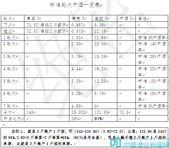 (二),每個輪次酒因入窖淀粉濃度不一樣,導(dǎo)致每個輪次酒的特點都不一樣,出酒率也不一樣,導(dǎo)致勾兌時每個輪次使用比例不一樣。