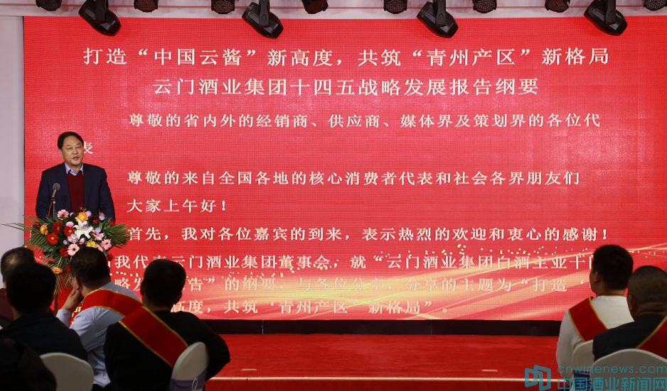 首屆北方醬酒聯盟主席、山東青州云門酒業集團有限公司黨委書記、董事會汲英民以“打造‘中國云醬’新高度,共筑‘青州產區’新格局”為主題,重磅發布了“云門酒業集團白酒主業十四五戰略發展報告”的綱要。