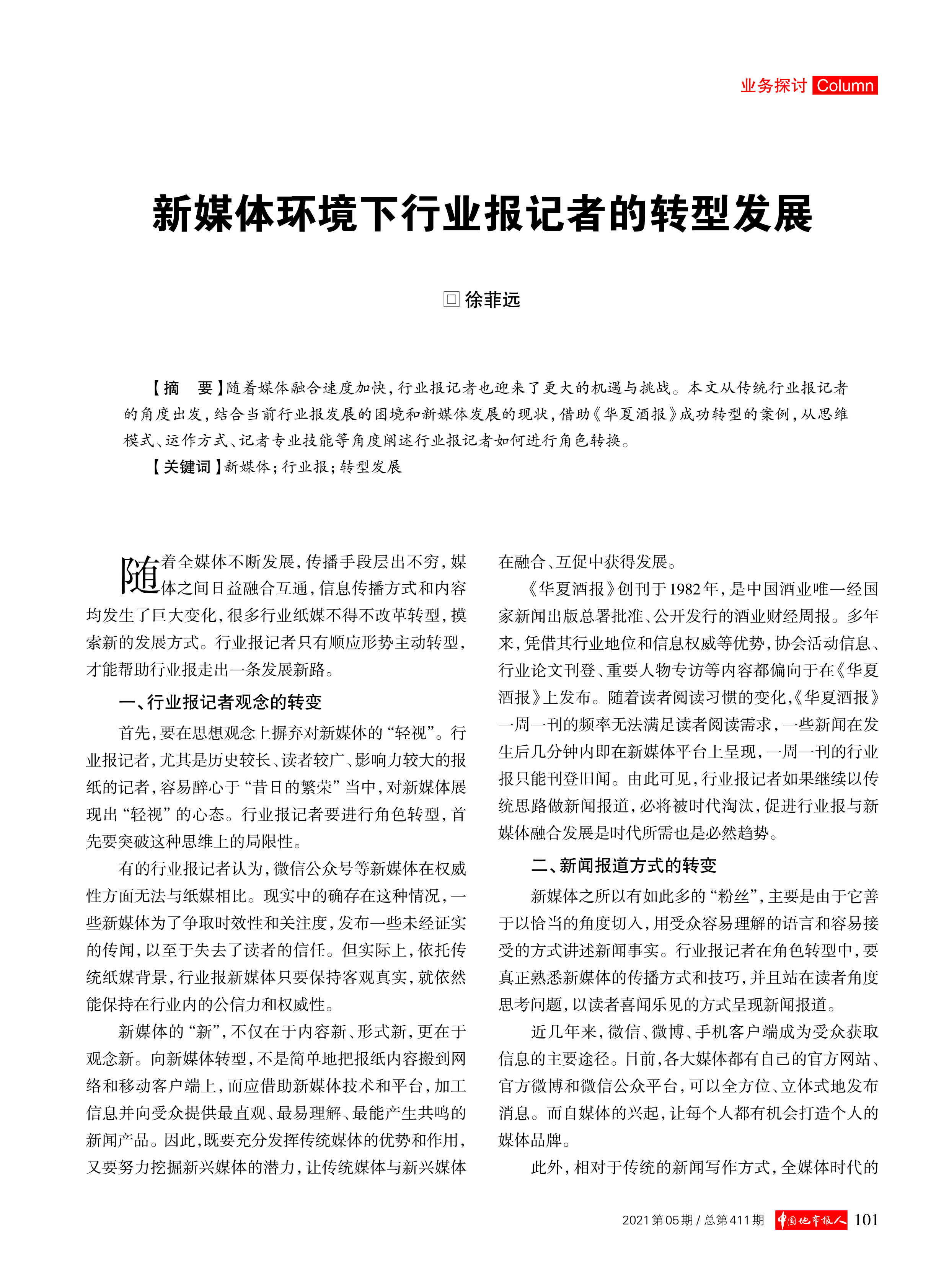 新媒體環(huán)境下行業(yè)報(bào)記者的轉(zhuǎn)型發(fā)展