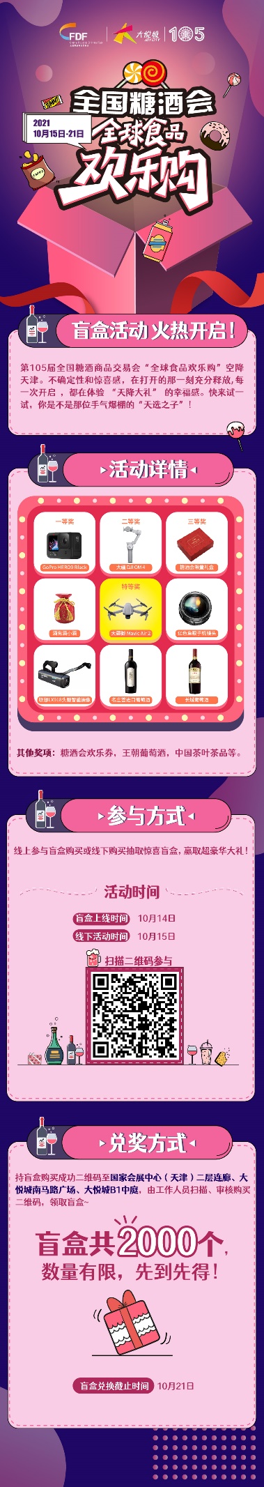 值得注意的是,本屆“全球食品歡樂購”首次開啟盲盒活動(dòng),參與線上購買或現(xiàn)場購買抽取驚喜盲盒,可贏取大疆航拍無人機(jī)、GoPro、糖酒會限量禮盒等豪華大禮。盲盒活動(dòng)通過營造“拆盲盒”帶來的神秘感和驚喜感,打造“天降大禮”的獨(dú)特消費(fèi)體驗(yàn)。