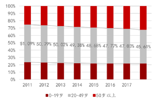 目前我國年輕人口占比開始下降,啤酒消費(fèi)主力軍及后備力量不足。啤酒消費(fèi)主力軍(20-49歲)人口占比自2011年后逐年下降,而后備軍(15-19歲)人口占比自2003年之后一直呈現(xiàn)下降趨勢,代際結(jié)構(gòu)調(diào)整使得啤酒行業(yè)由增量時(shí)代進(jìn)入存量競爭時(shí)代。