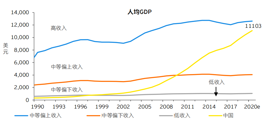 2020年,中國人均GDP已經(jīng)超過1萬美元,未來五年,中國將躋身高收入國家之列,國際經(jīng)驗(yàn)表明,人均GDP3000美元至1萬美元是消費(fèi)升級(jí)的關(guān)鍵加速期。