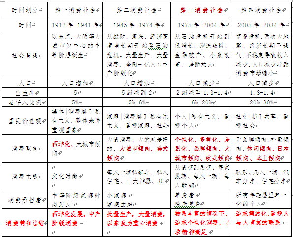 借鑒鄰國日本的四次消費(fèi)社會(huì)的特征對(duì)比,我國當(dāng)前消費(fèi)社會(huì)階段可類比日本第三消費(fèi)社會(huì),并部分呈現(xiàn)第四消費(fèi)社會(huì)的部分特征,比如為知識(shí)服務(wù)付費(fèi)、名創(chuàng)優(yōu)品的崛起等現(xiàn)象。第三消費(fèi)社會(huì)的主力消費(fèi)人群成長于物質(zhì)較為充沛的第二消費(fèi)社會(huì),其更加追求個(gè)性化消費(fèi)、尋求精神滿足;