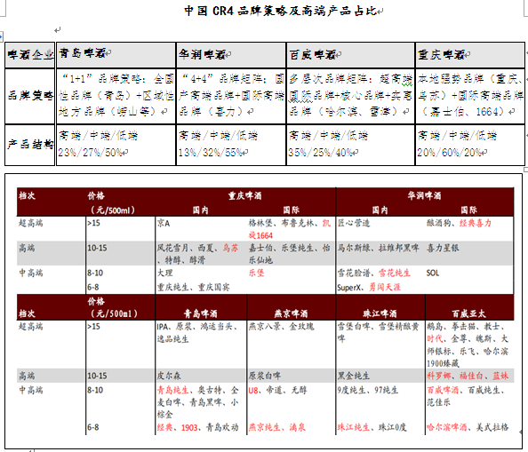 2020年CR5占比超過73%,話語權(quán)由市場端向龍頭企業(yè)轉(zhuǎn)移,在高端啤酒領(lǐng)域百威占