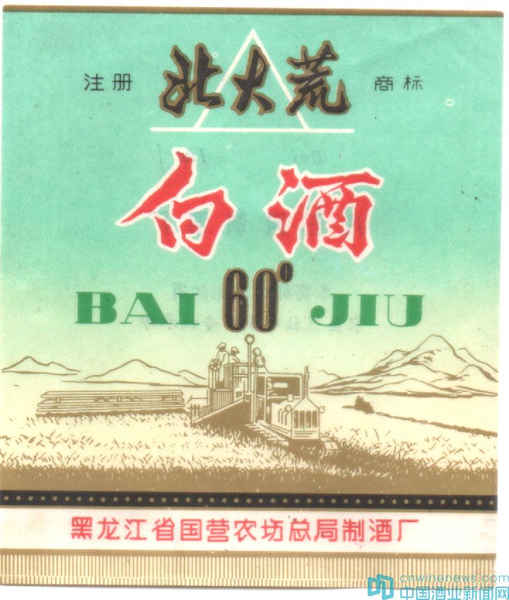 艾青接到任務后,一連設計了幾枚酒標,卻都不滿意。一天午飯后,他走出家門散步,走著走著就來到了農場白樺林,來到當年開出第一犁的三號地頭,此時正值北大荒收割季節,艾青看到康拜因在金色的麥浪中收割,一派生機,一下子有了靈感,于是一枚很有特色的酒標誕生了,就是現在的這枚“北大荒”酒標。