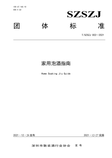 這份由深圳市散裝酒行業協會發起制定的《家用泡酒指南》,系在廣泛邀請中醫專家、酒類(果露酒)專家評委、酒類生產專家、健康養生專家、市場銷售代表和資深泡酒愛好者共同發起和參與,歷時一年,反復征集、研討、修改之后,于2021 年 12 月 20 日批準發布,并于 2021 年 12 月 27 日開始實施。